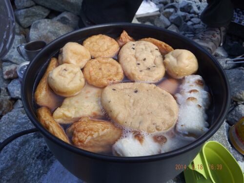 さむーい秋の山はあたたかいおでんでホカホカです♪ 調理も簡単! おでんの具とスープをぐつぐつ煮込むだけ!! シメは おうどん~♪ 手軽で温かく心もぽかぽかです♪ オススメ具はウィンナ―☆ byとの